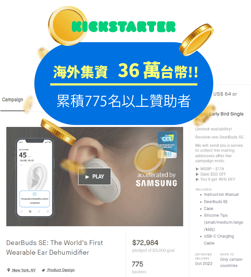 DearBuds SE 配備了多感測器,可以即時準確測量耳內的溫度和濕度,獨有的除濕技術,可在 3 分鐘內去除耳朵中的濕氣。
