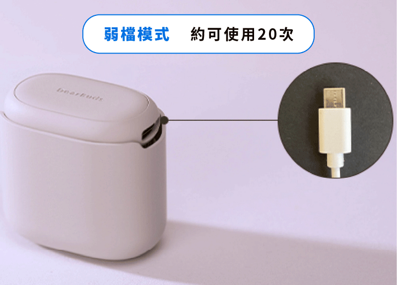 使用 USB Type-C 連接線,一次充電可使用約 15~20 次。