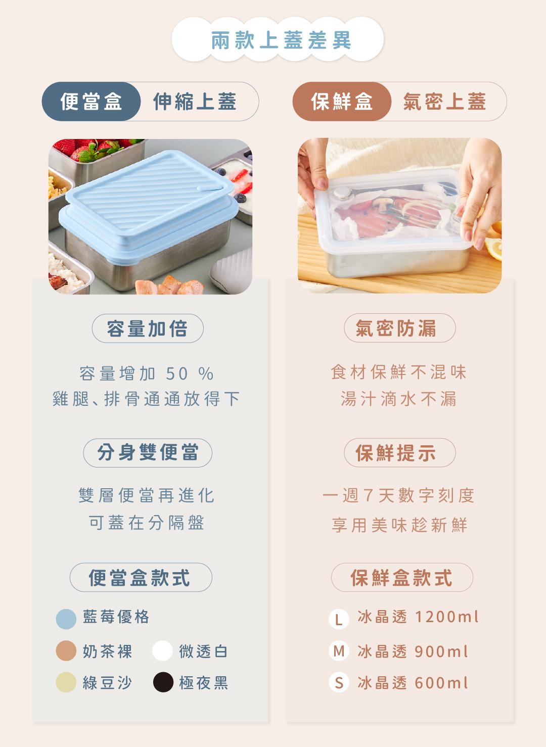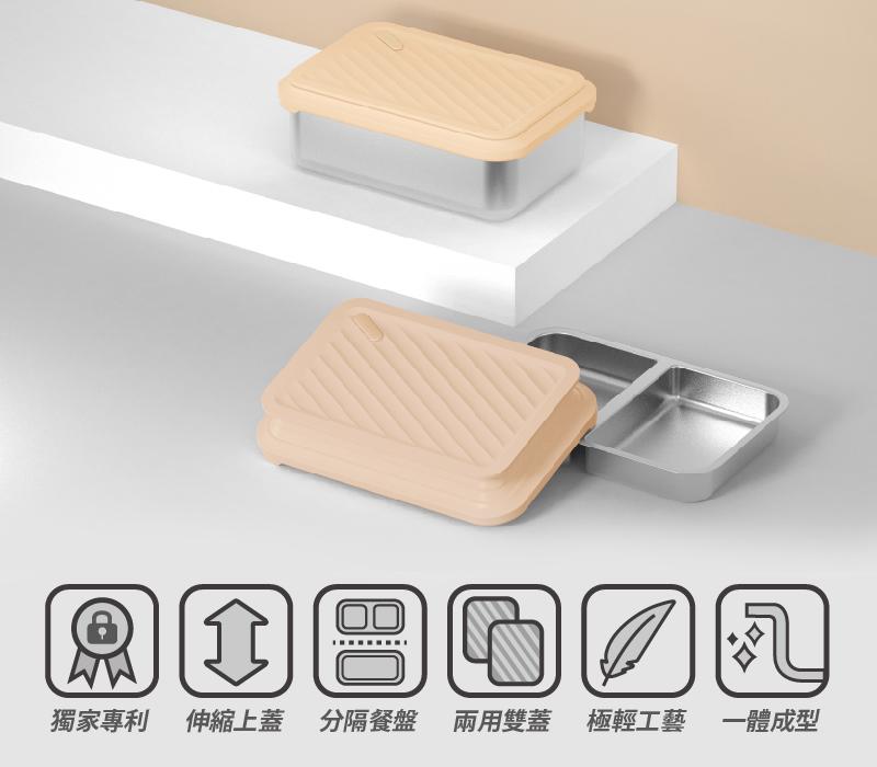 材質:盒體 304 不鏽鋼/分隔盤 304 不鏽鋼/伸縮上蓋 食品級白金矽膠