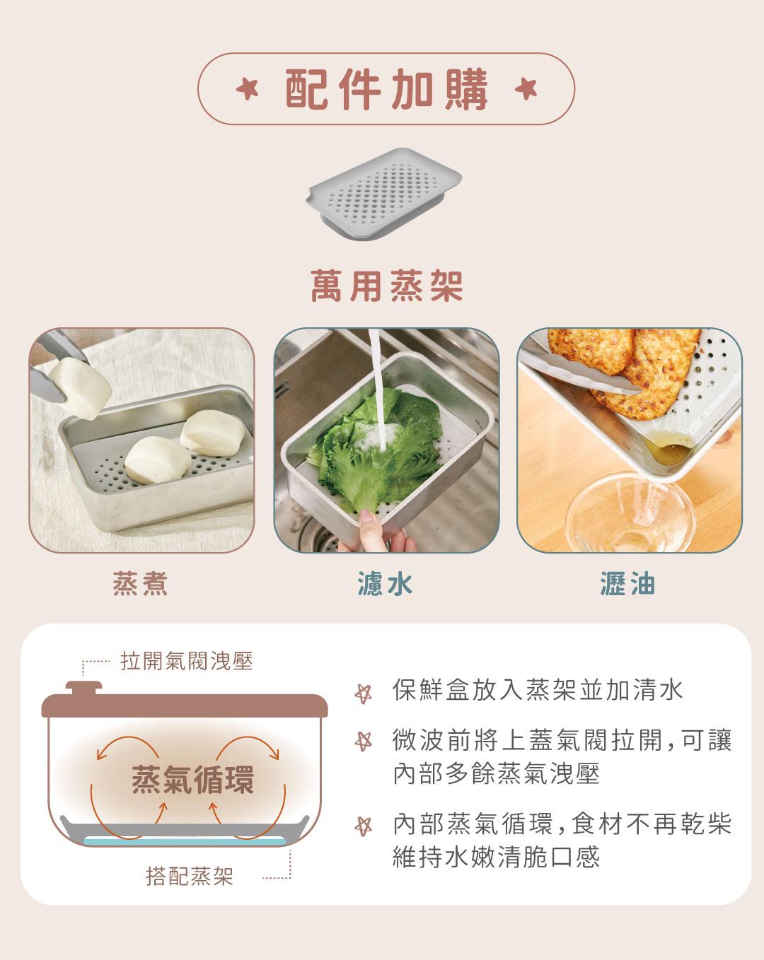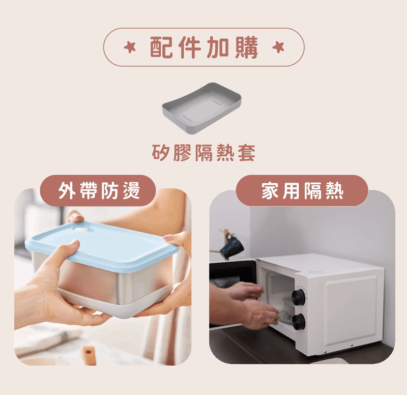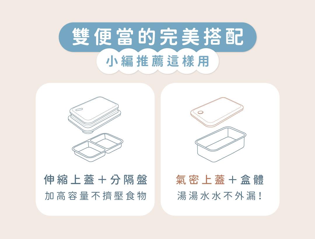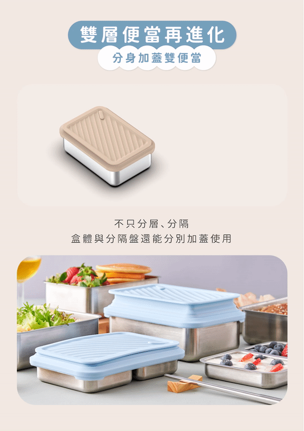 內容物:可微波不鏽鋼盒體、可微波不鏽鋼分隔盤、白金矽膠伸縮上蓋