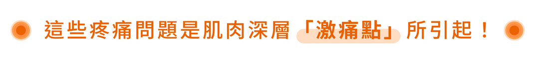 肌肉過度使用與長時間姿勢不良是引發「激痛點」(trigger point) 的主要原因,除了疼痛還會造成肌力下降、關節活動力降低,甚至可能惡化為姿勢與骨架永久變形!與激痛點共用同一條神經的區域,常會誘使大腦「誤判」疼痛部位,產生「轉移痛」的症狀,讓你這裡痛那裡也痛!