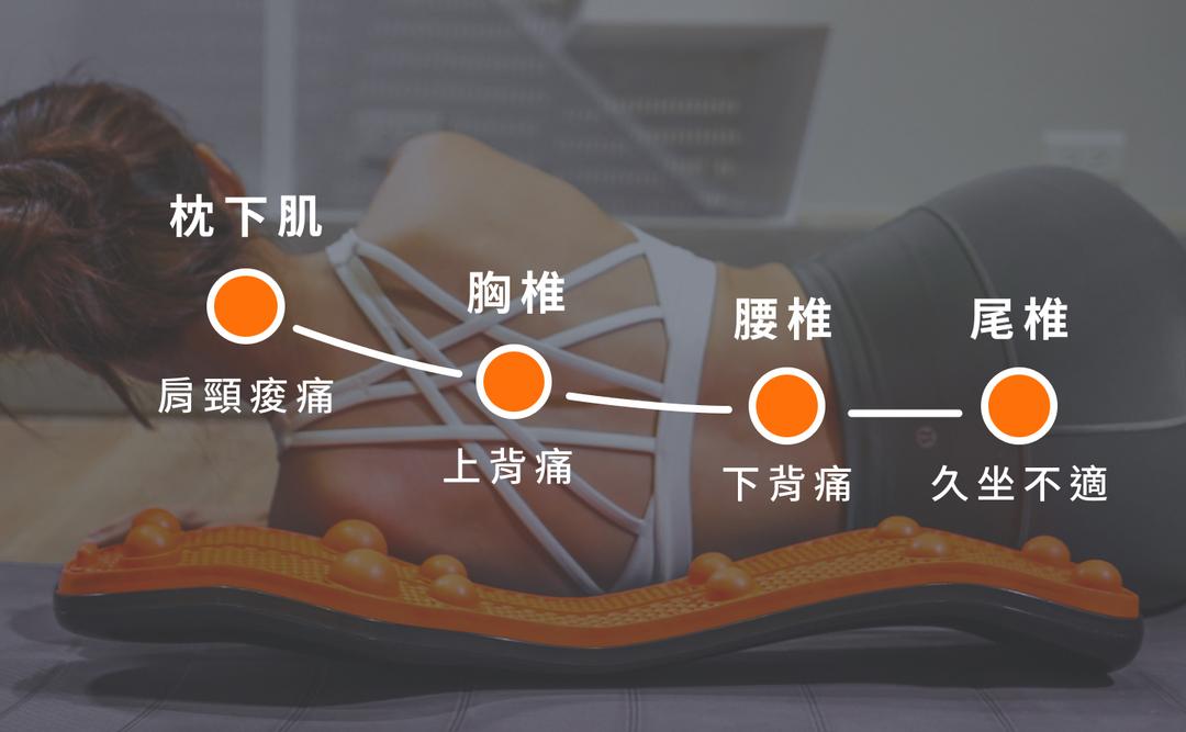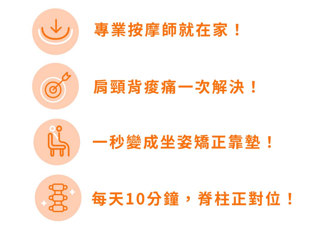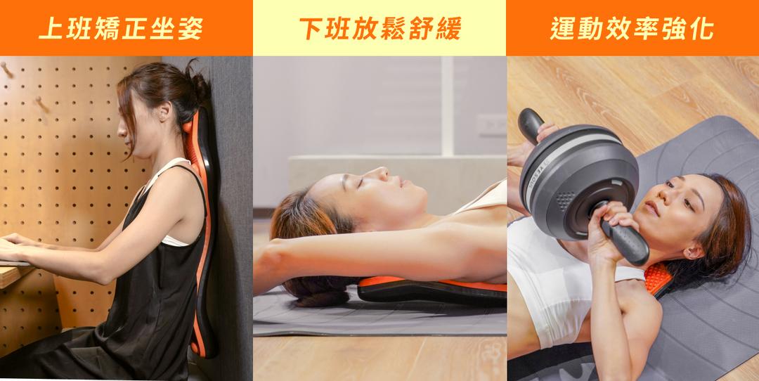 長期低頭使用電腦、辨公室桌椅環境不符合自己的體型,導致肩膀長期緊繃而造成肌肉慢性傷害。【Dr. Fu 酸痛按摩師】除了能按摩放鬆緊繃肌肉,更能在一般的椅子上使用成為坐姿矯正靠墊,讓背部得到完整支撐,並回復脊椎該有的曲線。