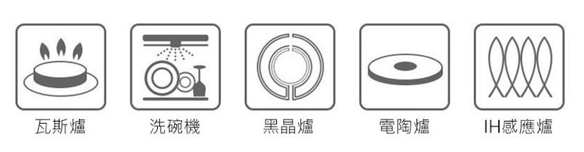 適用:瓦斯爐、黑晶爐、電陶爐、感應爐、烤箱、洗碗機(不可使用於微波爐)