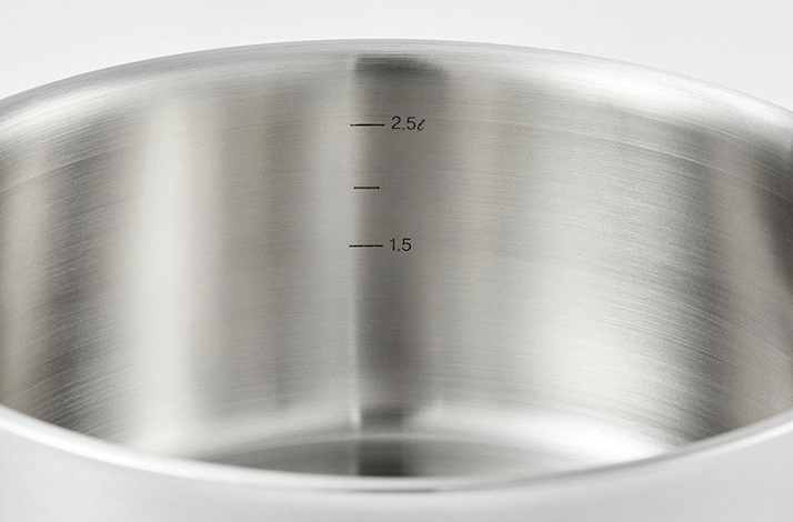 依據鍋子尺寸,內壁有刻度標示,料理起來更加便利!