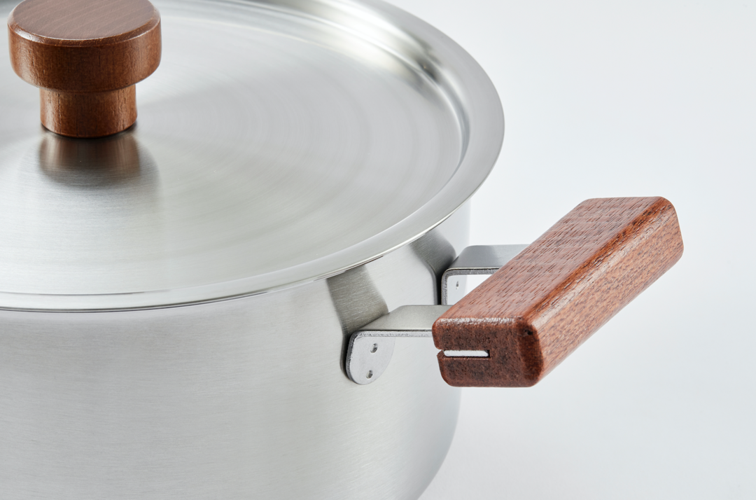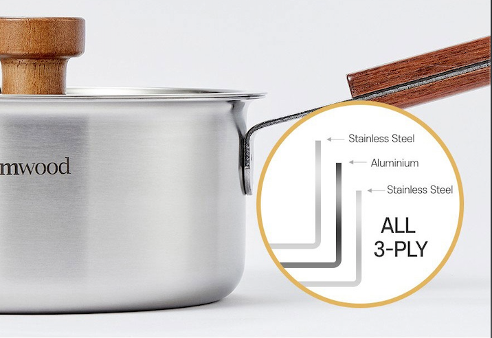 在 304 不鏽鋼之間加入鋁,極速導熱效果,整體鍋身皆以三層不鏽鋼製成,料理起來省時又節能。