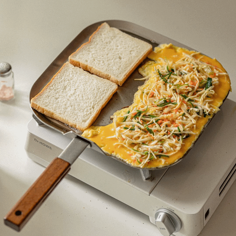 韓國製造品質保證,整體鍋身皆以三層不鏽鋼製成,極速導熱效果,耐用、抗酸鹼、保養起來也方便,可製作早午餐吐司、鬆餅,到烤蔬菜、煎牛排等料理,也可用於鐵板料理。