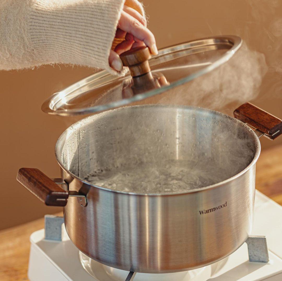 韓國現代俐落造型,簡約又充滿質感,採用三層不鏽鋼材質,鍋口延伸設計與貼心內壁刻度標示,用起來更加便利!