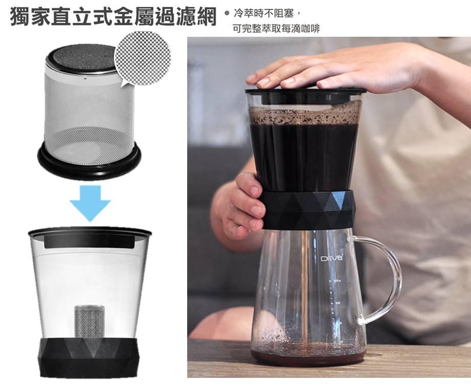 - 獨家直立式金屬過濾網,冷萃時不阻塞可完整萃取每一滴咖啡液體