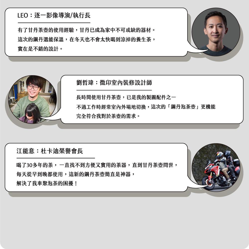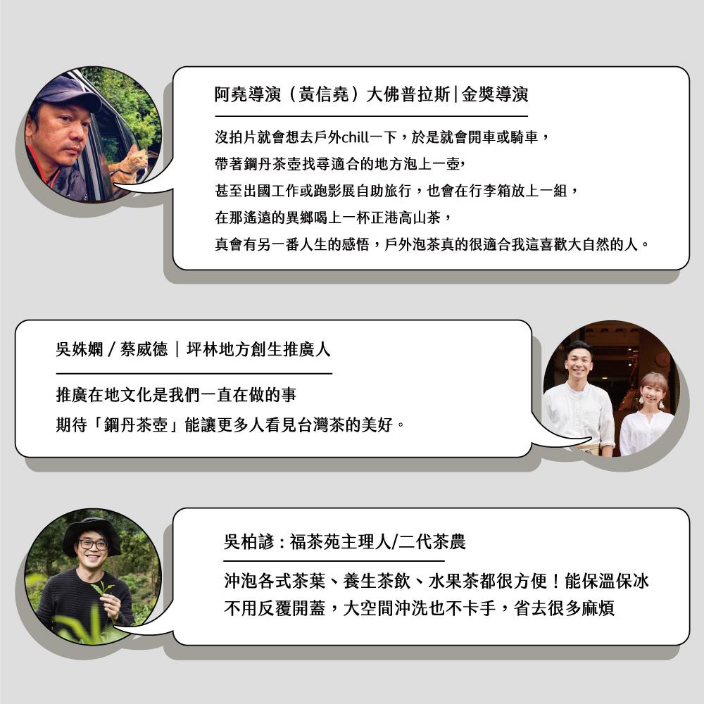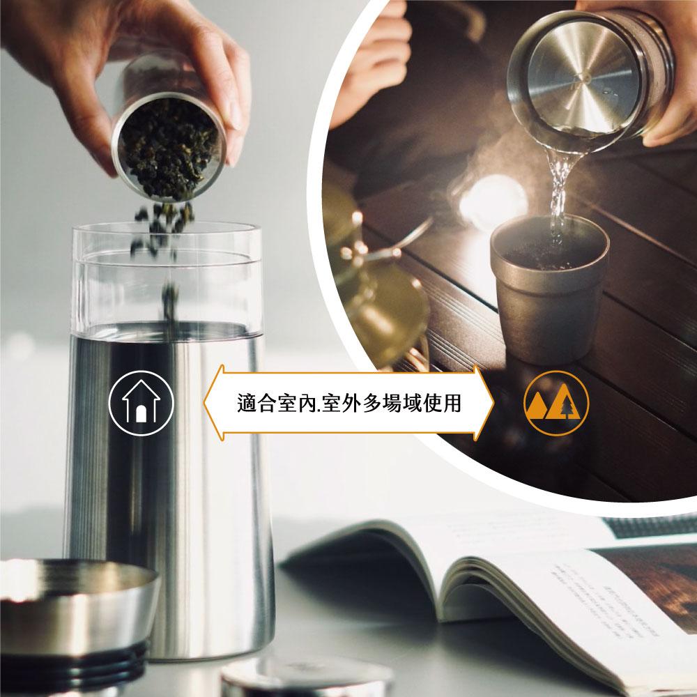 鋼丹泡茶壺採用耐碰撞的不銹鋼材質,無論是室內居家、辦公室,或是戶外旅行、野餐、露營,隨時隨地都能享用茶飲,泡茶不再受到場域限制。