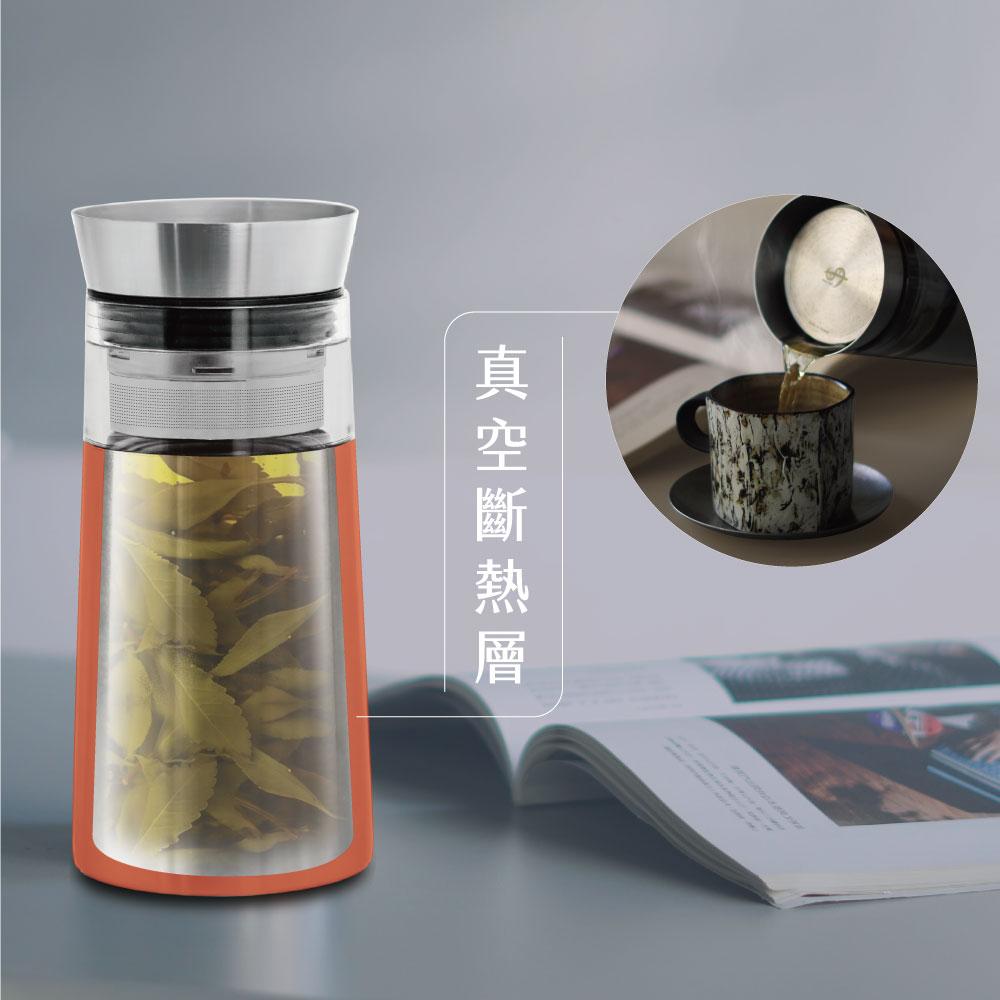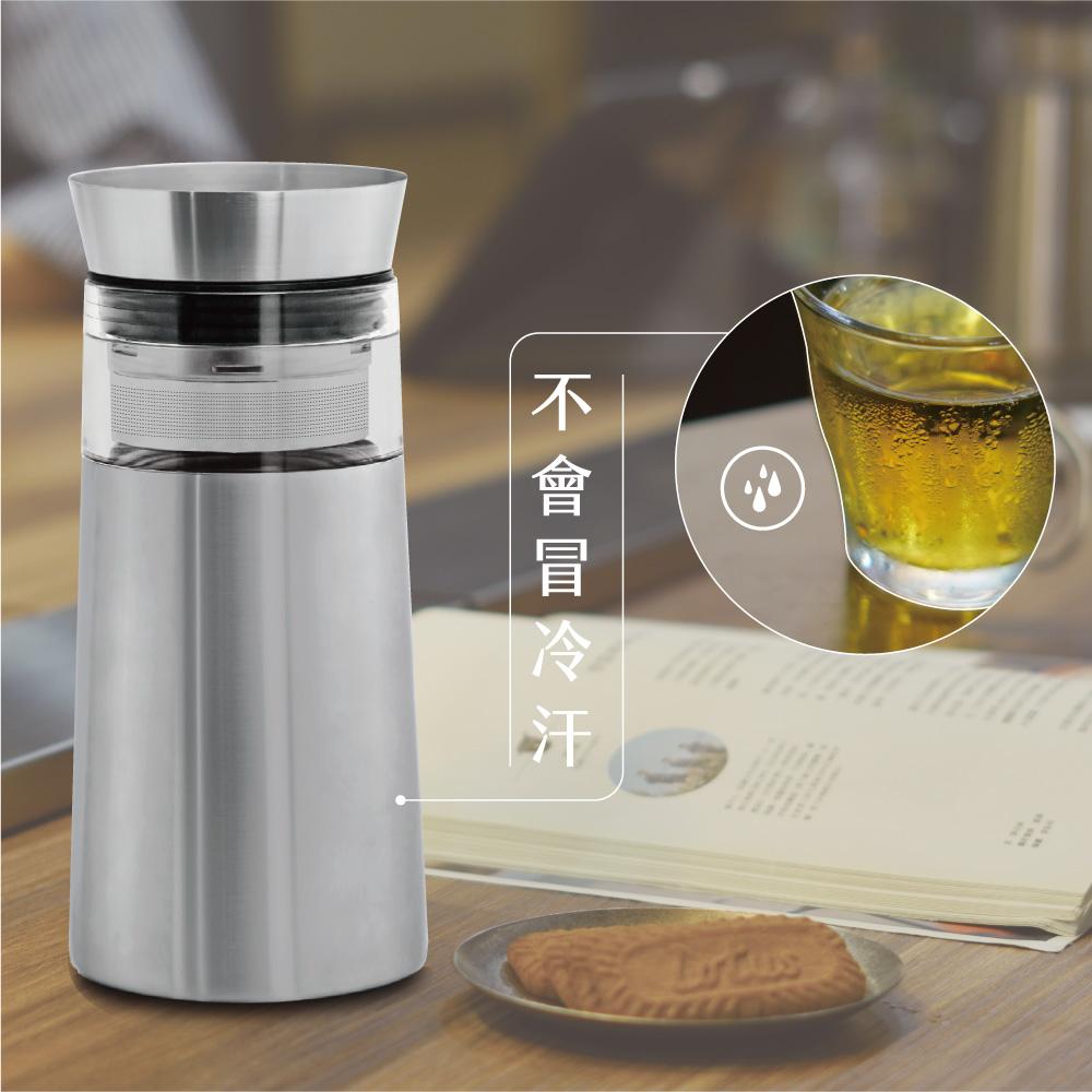 為了維持泡茶時的水溫,不銹鋼的瓶身採用雙層真空的設計,能有效隔絕氣體對流與熱傳導,達到延長飲品保溫/保冰時間與維持飲品口感的效果,即便天氣再冷也能享受暖心的茶飲。