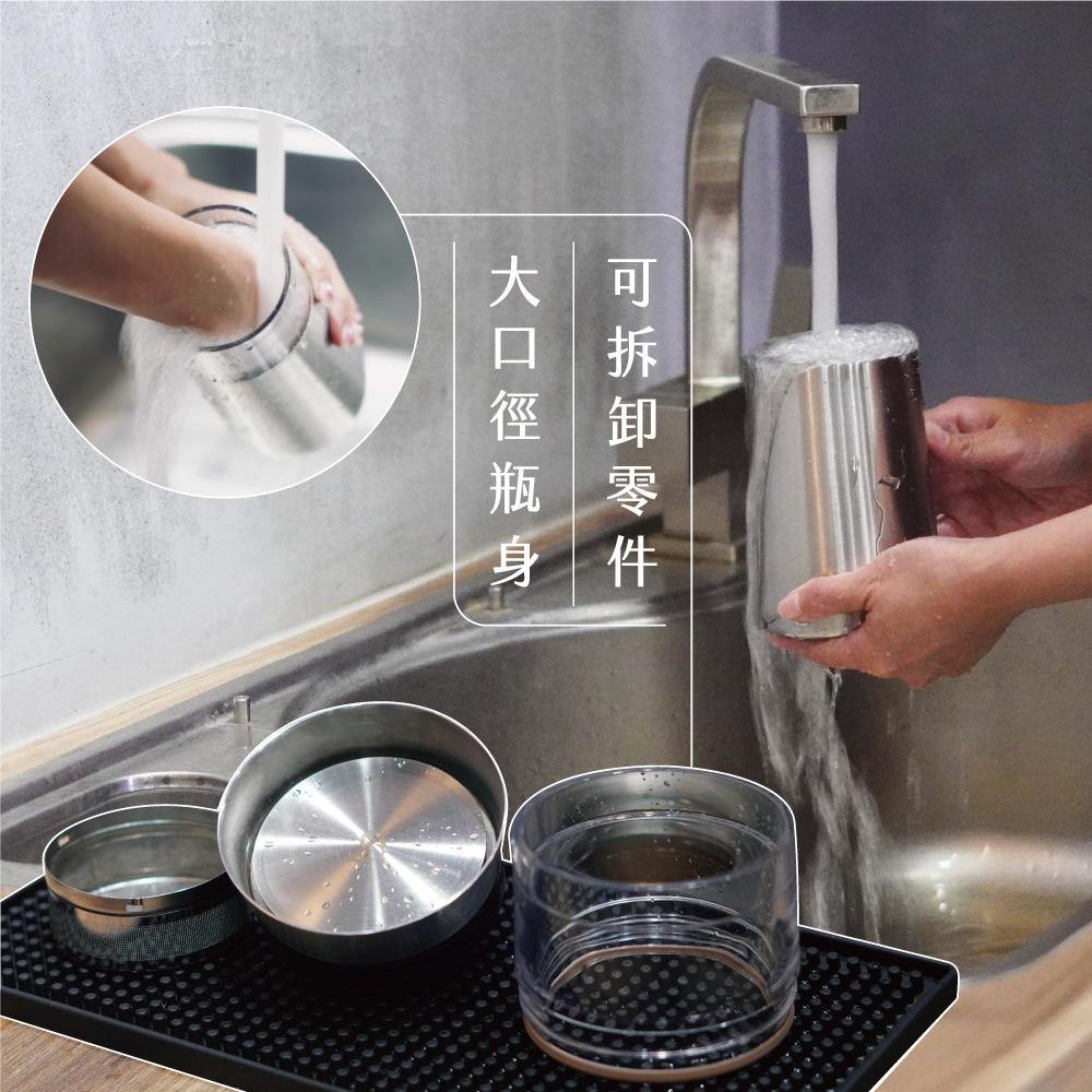 大口徑的設計不只讓茶葉能完整伸展、釋放茶韻,清洗時整隻手都可以伸進瓶身,加上可拆卸的零件,讓每個角落都能輕鬆清潔無死角。