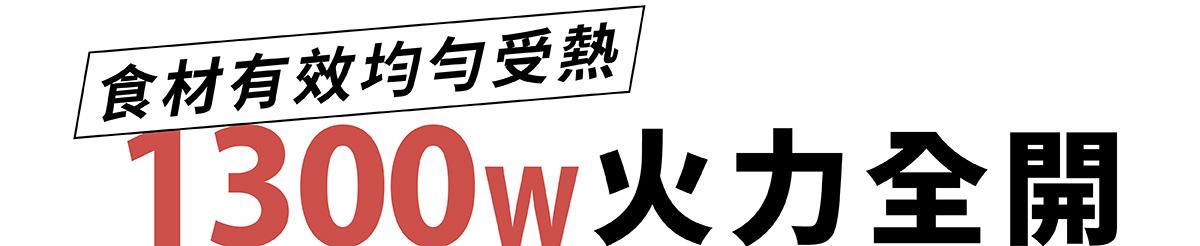 隨附專屬橫紋烤盤,1300W 大火力,獨家遠紅外線設計,食材受熱均勻,多種燒烤料理快速出餐。
