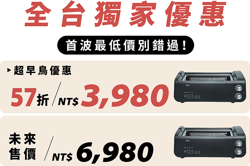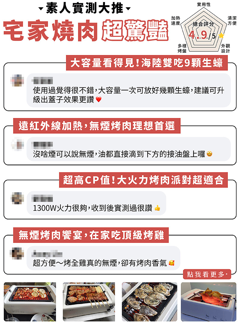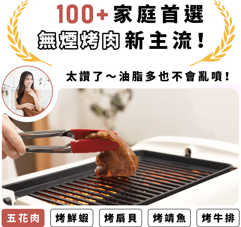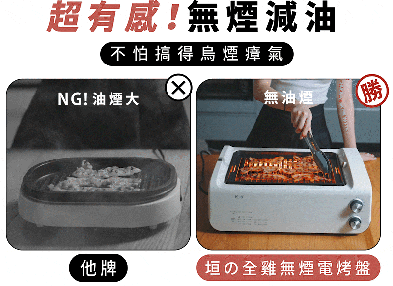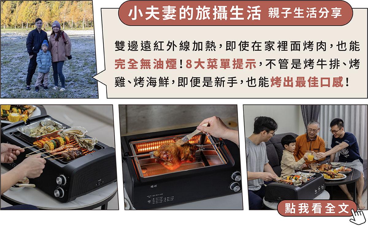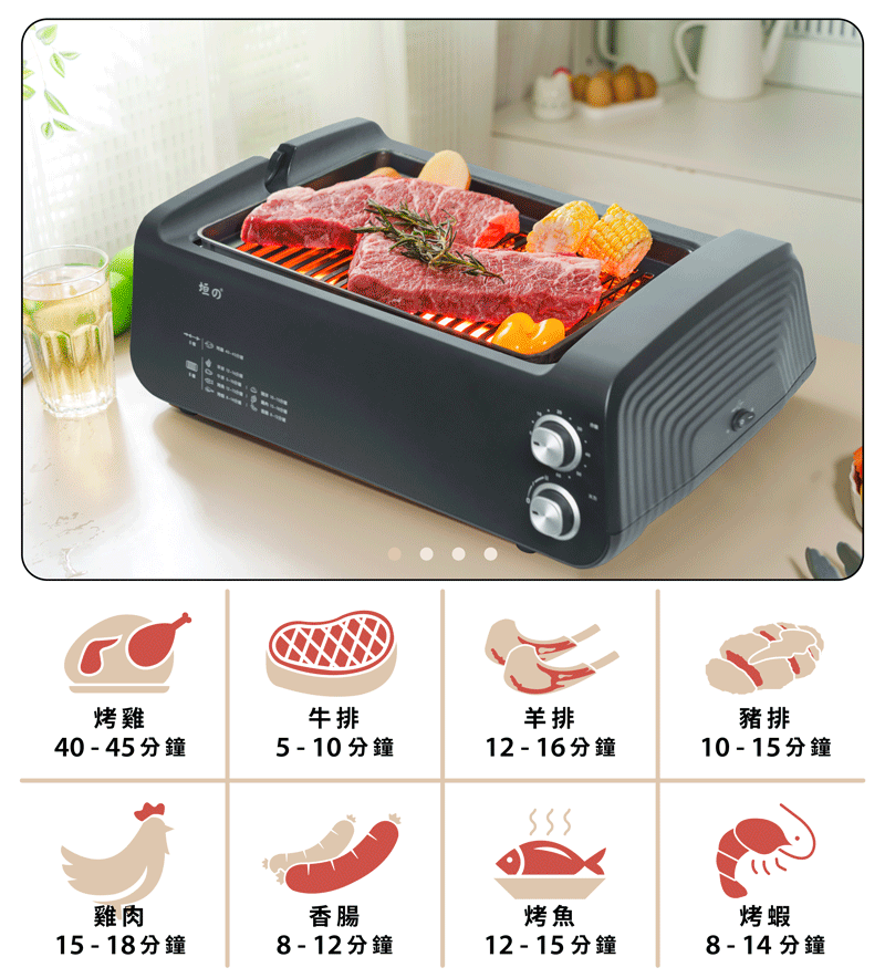 - 雙邊遠紅外線加熱,無煙燒烤新食代