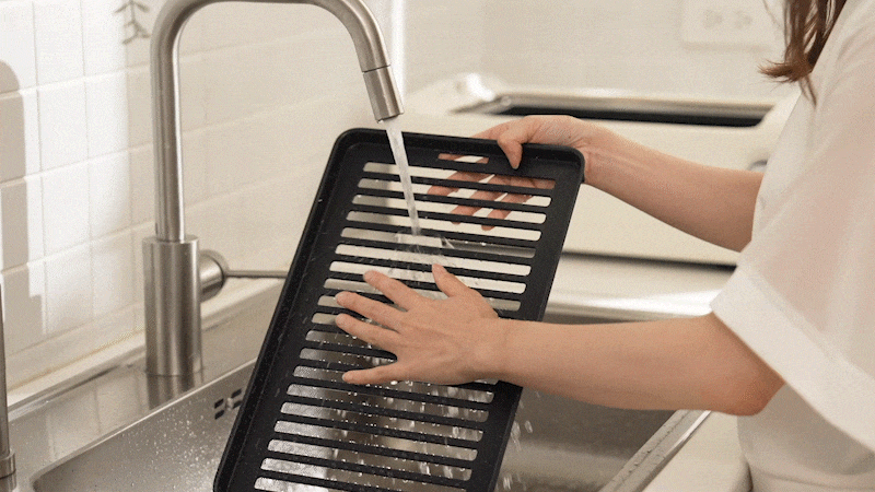 不沾烤盤設計,使用完就能毫不費力地輕鬆刷洗,不需擔心烤盤上殘留油垢難清洗。