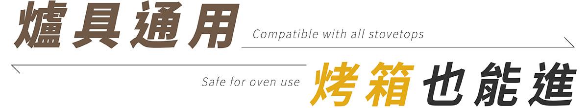 搭配鋼製導磁鍋底,傳熱穩定,適用各式爐具,鍋身耐熱最高可達 260°C,亦可進烤箱使用,靈活應對各式烹調需求。(考量把手結構,建議烤箱使用溫度為 180°C 以維持最佳使用狀態)