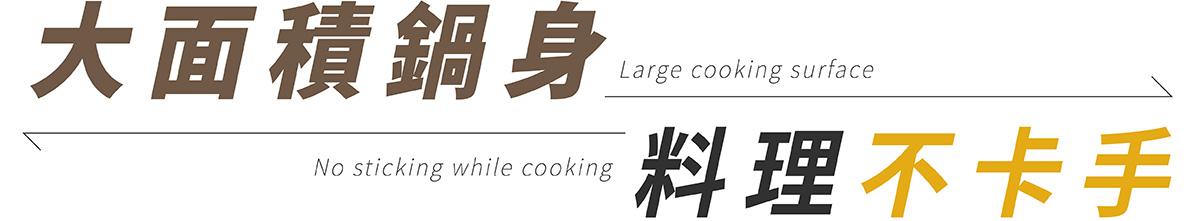 大面積鍋身,料理更從容不擁擠,煎炒燉煮都能輕鬆應對,多人份料理一次完成。