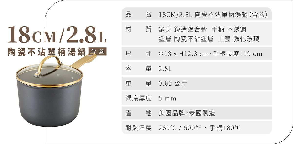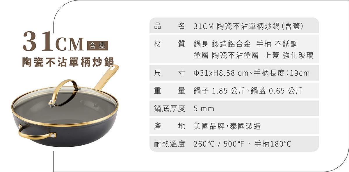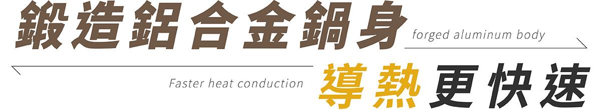 - 厚釜鍋底+鍛造鋁合金鍋身,導熱快速均勻