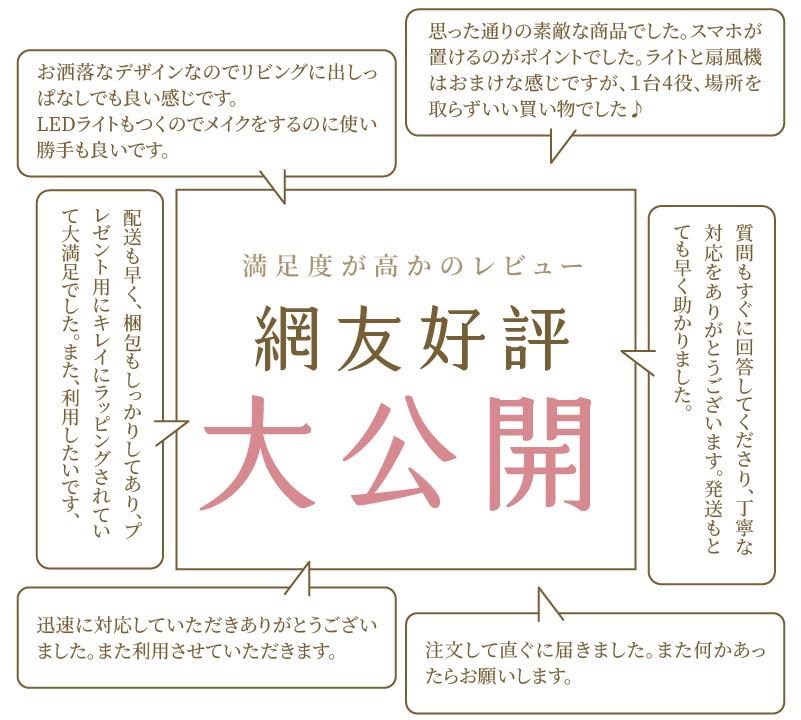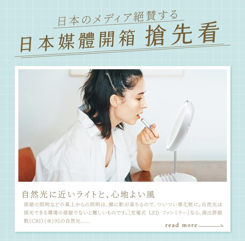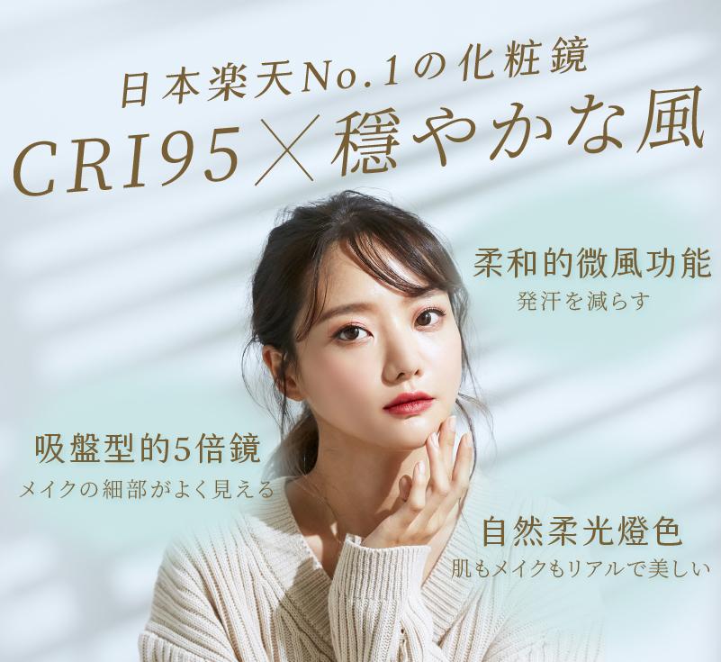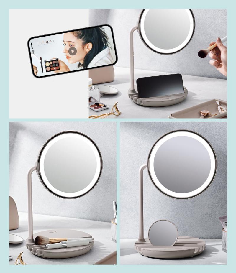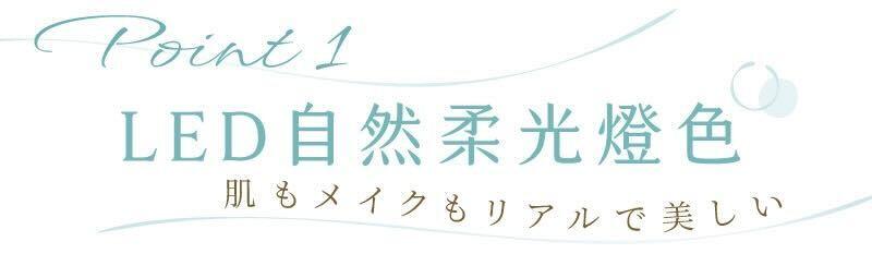 LED 自然柔光燈色,CRI 達 95 高顯色指數,呈現清晰自然妝容,貼心柔和微風功能,保持皮膚的涼爽和舒適,有效降低出汗的情況,分隔底座設計方便放置手機、化妝配件、配飾等物品。