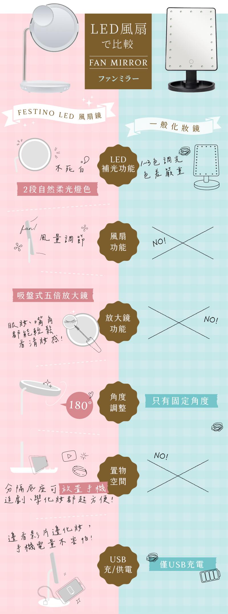 品名:日本麗克特 FESTINO LED 風扇鏡