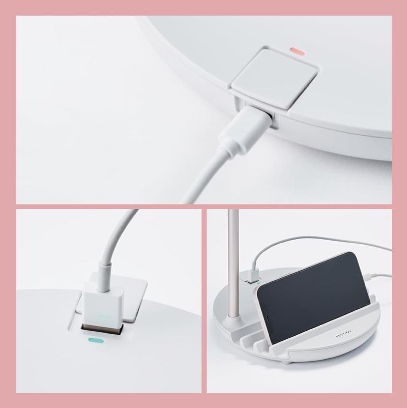 USB 供電接口,可為手機、音箱、充電式彩妝等設備充電;無線使用設計,輕巧攜帶方便,隨時隨地輕鬆上妝,適合旅行和外出使用。