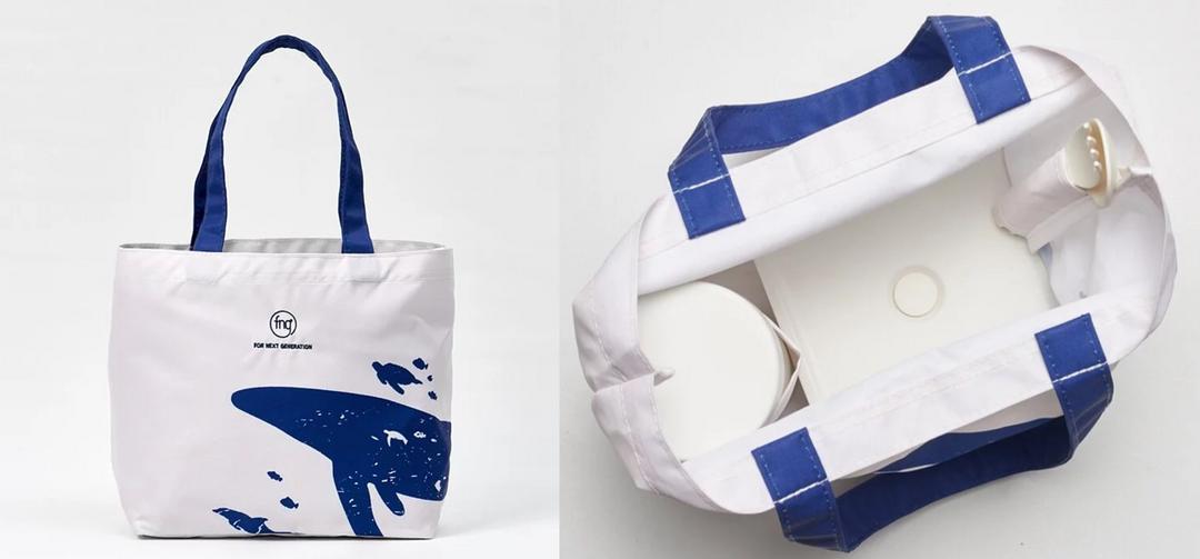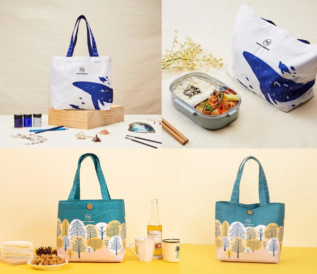 FNG與台灣吧首度聯名推出,由 100%回收物製成的寶特保冰保溫袋,內部魔術大空間,約可放入六杯手搖飲或便當套組與隨行杯,適合日常生活攜帶使用。
