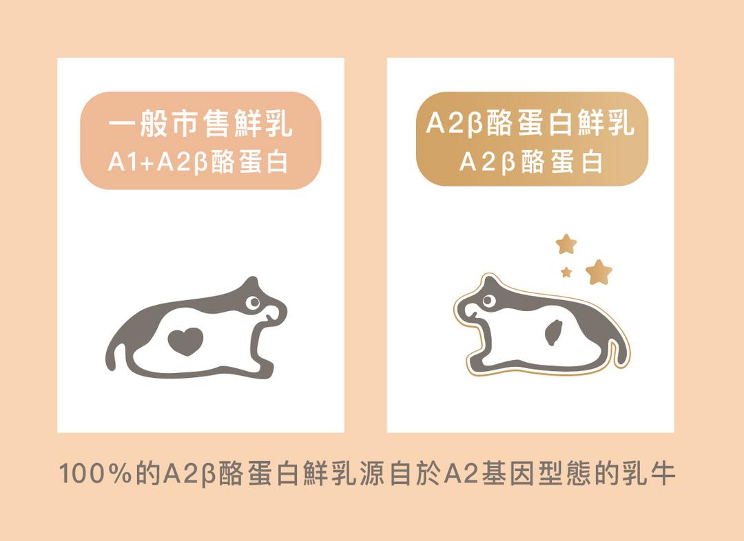 牛奶一直以來因為其內含乳糖和乳蛋白,造成大部分的人在飲用牛奶或乳製品時容易產生不適症狀,而 A2β 酪蛋白鮮乳則因為可以保留牛乳中原有的營養素和蛋白質,且為更好吸收的蛋白質。