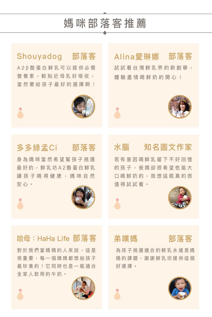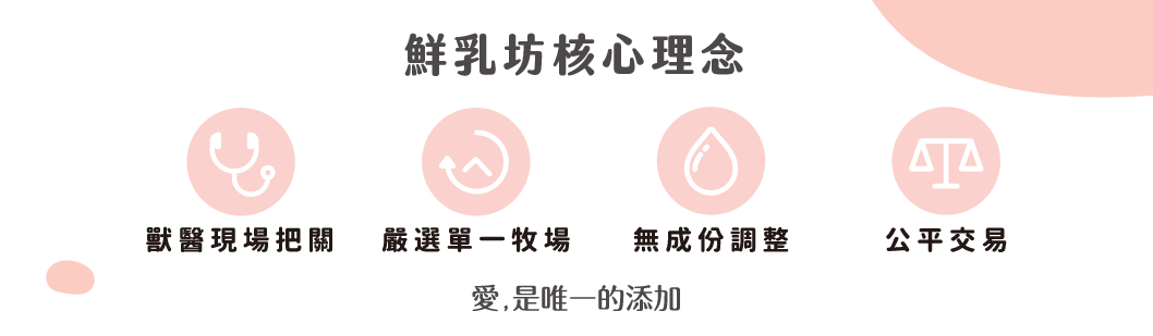 鮮乳坊一直堅持單一乳源、獸醫把關,打造優質的鮮乳。台灣僅有 0.1% 珍貴乳源,具有貼近母乳好吸收的特性, 是一瓶全家都可以喝的鮮乳。我們希望讓每個人都能大口喝鮮乳,品嘗鮮乳最原始的風味。