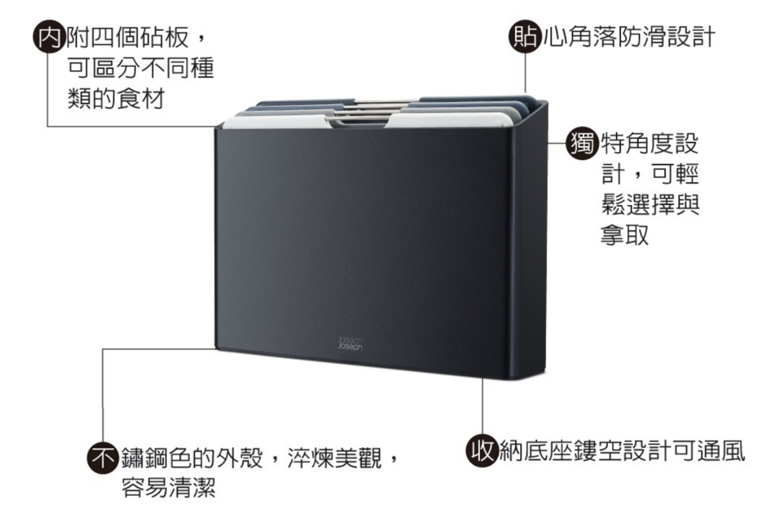曾獲得國際設計大獎的 Joseph Joseph 英國創意餐廚,將無數巧思與創意元素加入原本平凡的廚具用品中,讓下廚成了生活中最快樂的事情,同時也帶給家人多一分的溫馨和樂。