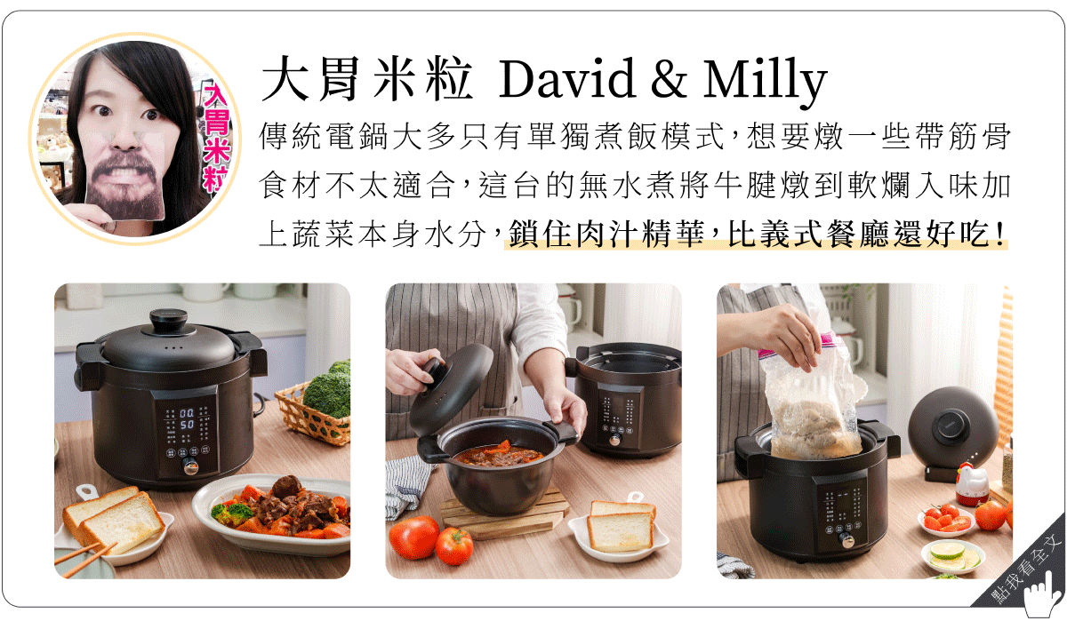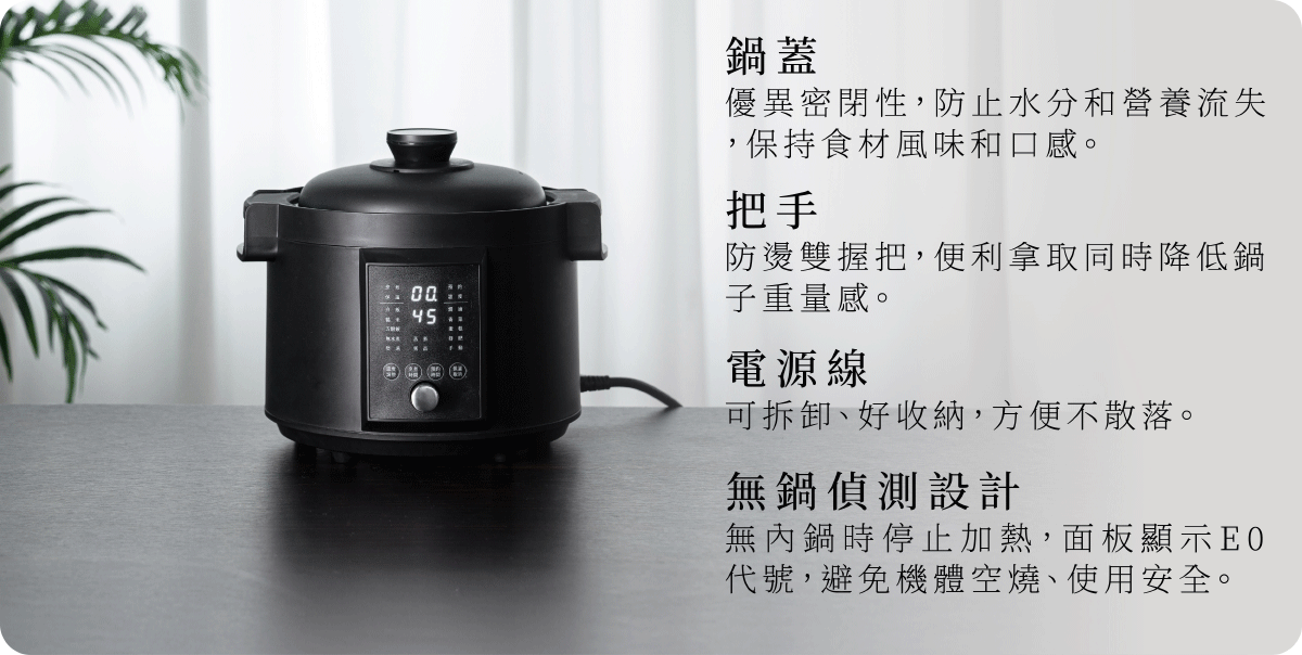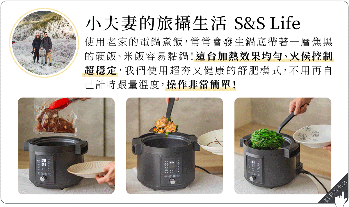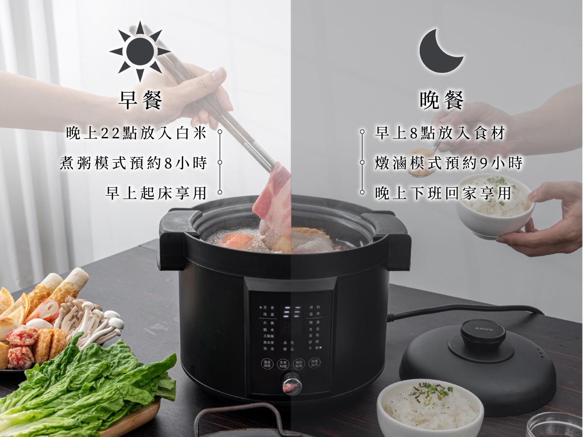 內建 12H 定時模式,可以設定 30 分鐘- 12 小時預約烹調,只要在出門前或前一天晚上先放入食材,到家就能好菜上桌,下班後再也不用匆忙準備料理!