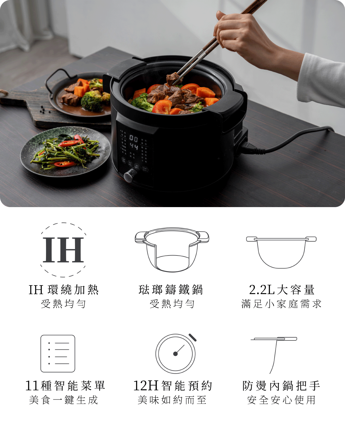 2.2L 大容量,可以煮 3-4 杯米,約為 3-4 人份量,一鍋就能滿足小家庭需求。