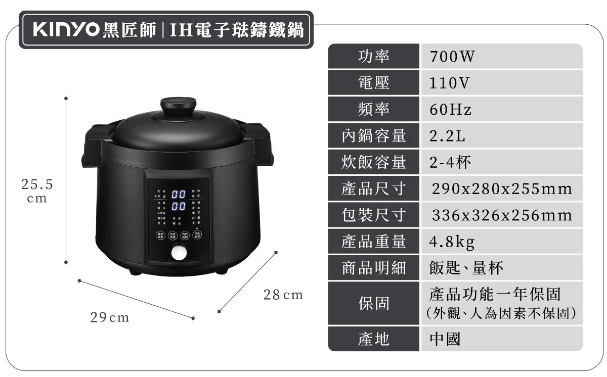 KINYO 黑匠師|IH電子琺瑯鑄鐵鍋