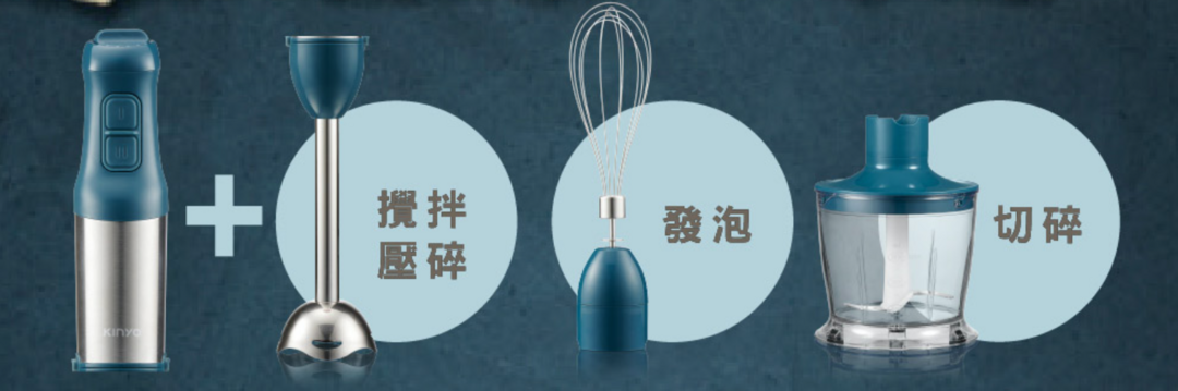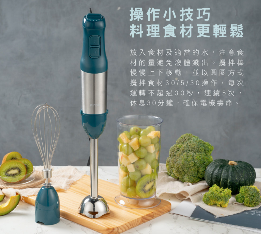 KINYO 多功能調理棒好握不滑手,最適合調理冰沙、奶昔、湯品、糖霜、煮熟蔬菜及副食品,有 8 段漸進式變速,即可輕鬆攪拌、製糊與切碎食材,分離式不鏽鋼攪拌棒,方便拆裝清洗,安全衛生!