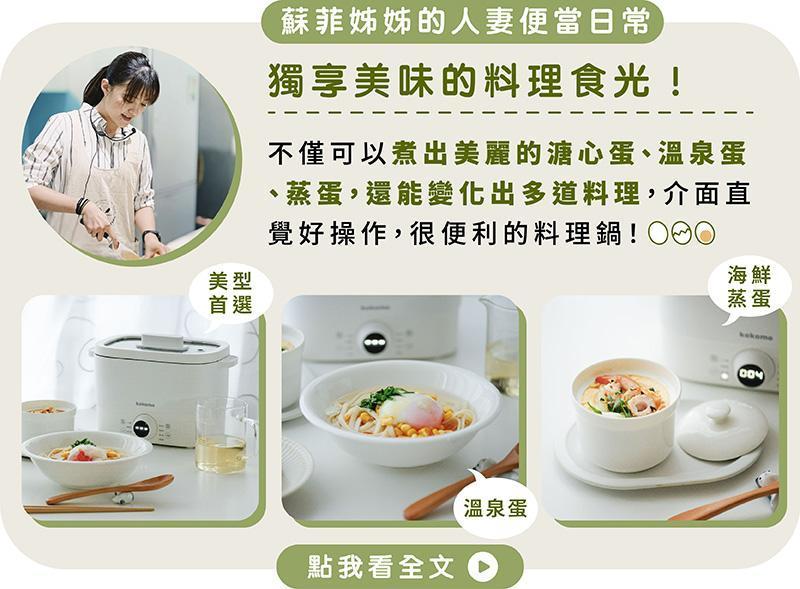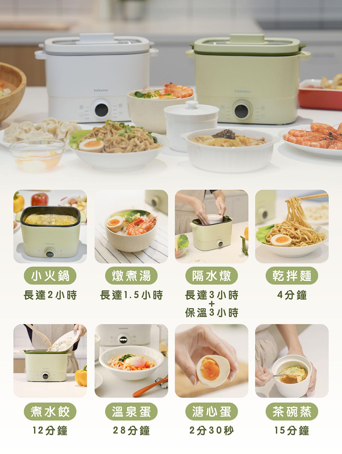 8 種智能烹煮模式,一鍋變換 8 道料理,輕鬆滿足居家料理需求,隨心所欲創造多樣菜色 ,早餐、午餐、晚餐交給日本 kokomo 快可瀝美食煮蛋鍋!