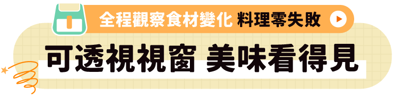透明玻璃視窗設計,能輕鬆看到食材烹煮過程的變化,快速完成健康又美味的料理。