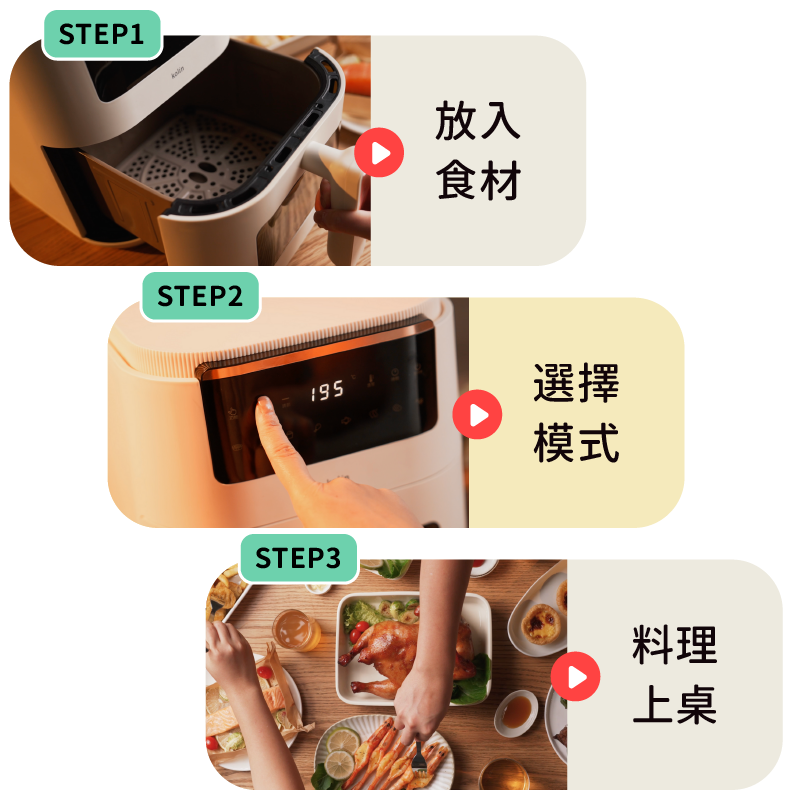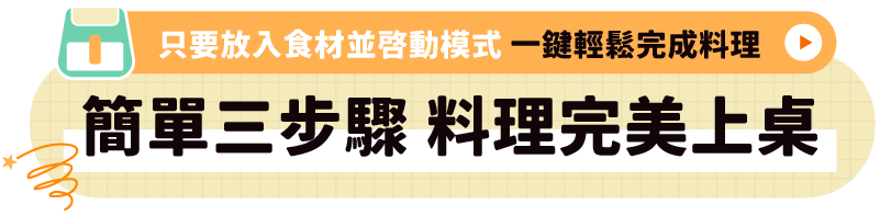 只要放入食材,選擇模式一鍵完成,簡單三步驟,省時快速即可讓料理完美上桌。