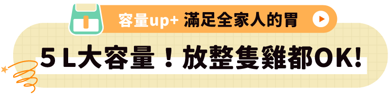 容量升級,打造 5L 大容量,放入整隻烤雞都沒問題,滿足各種料理應用 !