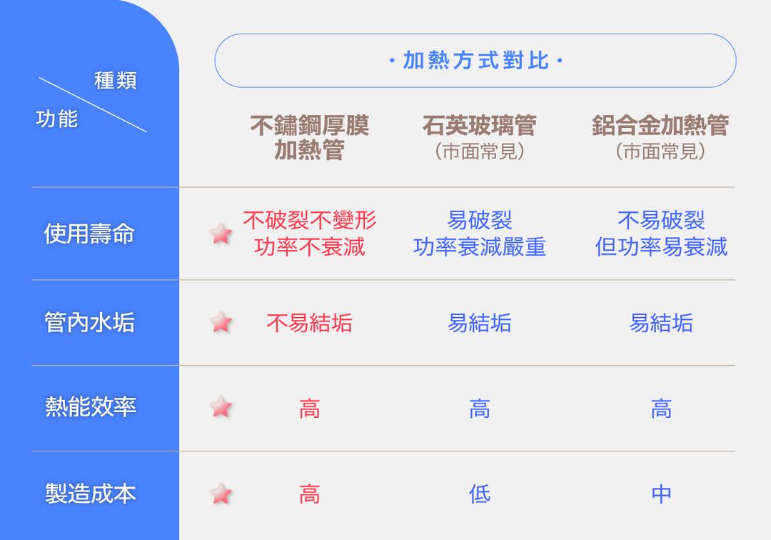 每次煮沸開水,除了會燒去水中原本富含營養的礦物質,更會漸漸累積不好的「亞硝酸鹽」危害身體的健康。一般建議,飲用水以「不煮沸超過 3 次為原則」,KOM 瞬熱式智能飲水機以超高溫不鏽鋼鋼管快速瞬間加熱,讓開水能在 3 秒內達到沸騰點。