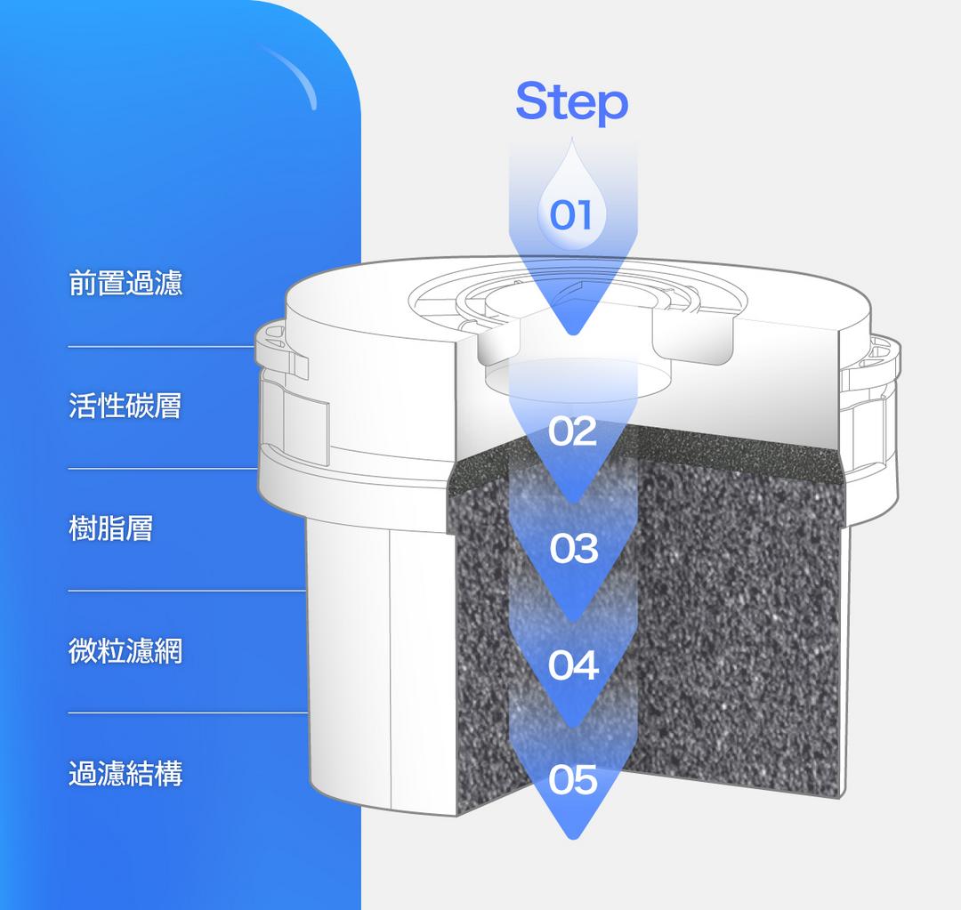⑤ 過濾結構:保持水流穩定,提供長效有用的持續濾淨