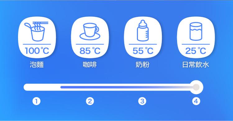 宵夜的泡麵要 100 度,咖啡需要 85 度,奶粉是不燙口的 55 度,早起需要一杯 25 度的溫水醒醒腦。無論是什麼樣的需求,KOM 瞬熱式智能飲水機的四段水溫需求,都能即時接住,為您送上一杯純淨好水。