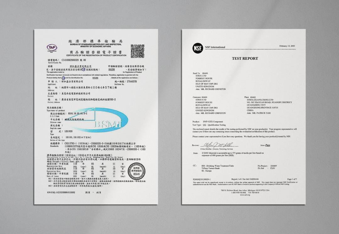 KOM 瞬熱式飲水機全機經過 BSMI 認證,使用更有保障。同時,濾芯也經美國國家衛生基金會(NSFI)檢驗通過,為您喝進的每一口水安全把關。