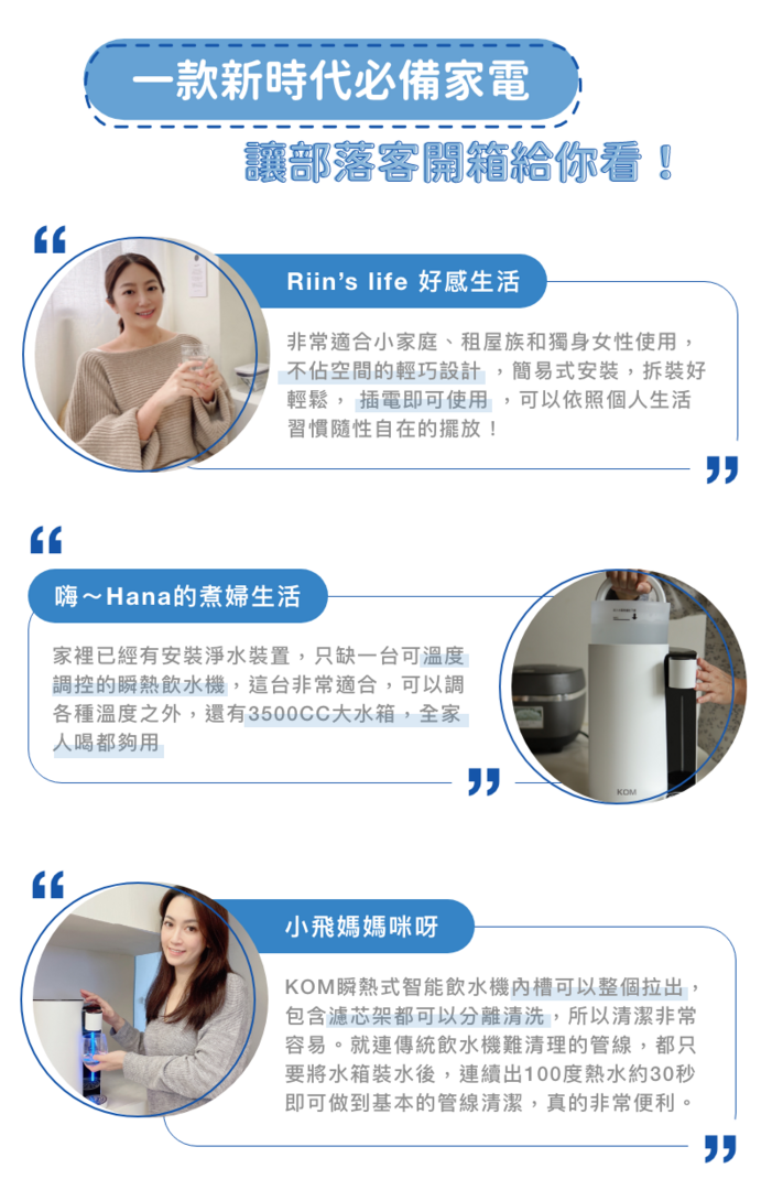 喝水的事,就交給 KOM 瞬熱式飲水機吧 !