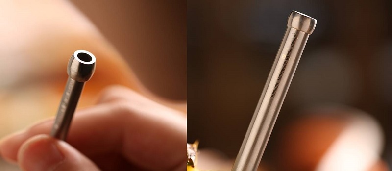獨家專利安全球設計,加上純鈦特性,整體重量極為輕巧,細吸管僅 6.9g,並隨附清潔刷,讓你清洗更方便。