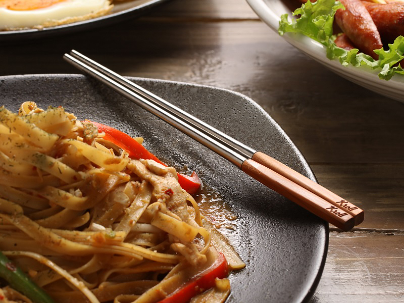 日式餐具設計質感,木頭端為手工製作,使用高品質純鈦,抗酸鹼;純鈦與木頭完美結合的極致工藝。