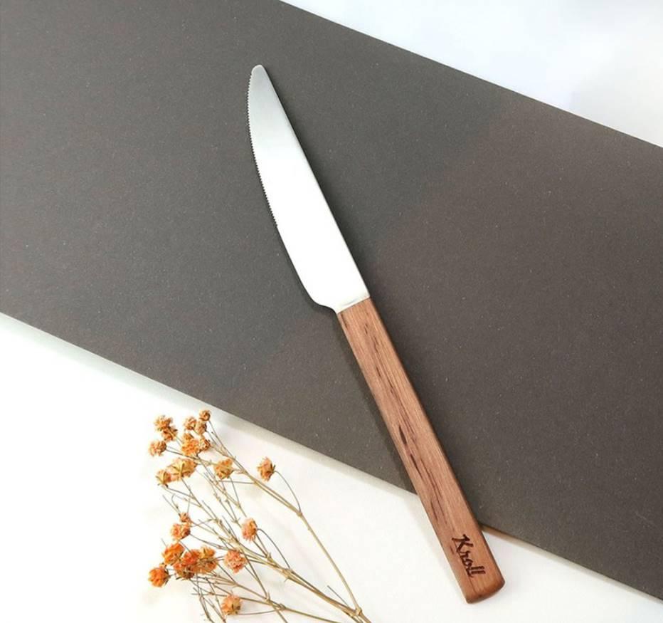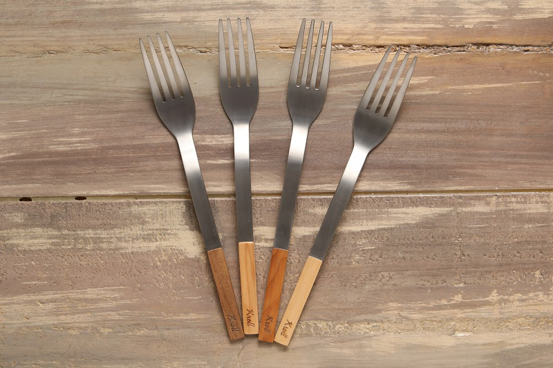 四種不同的木柄選擇,經過老師傅的手藝拋光打磨,打造出專屬純鈦餐具。