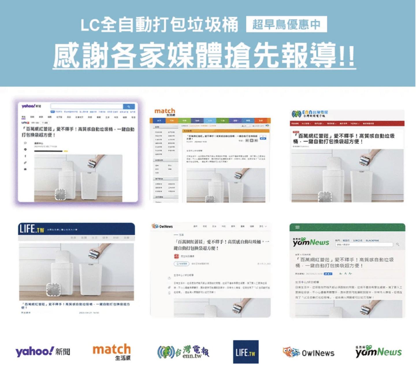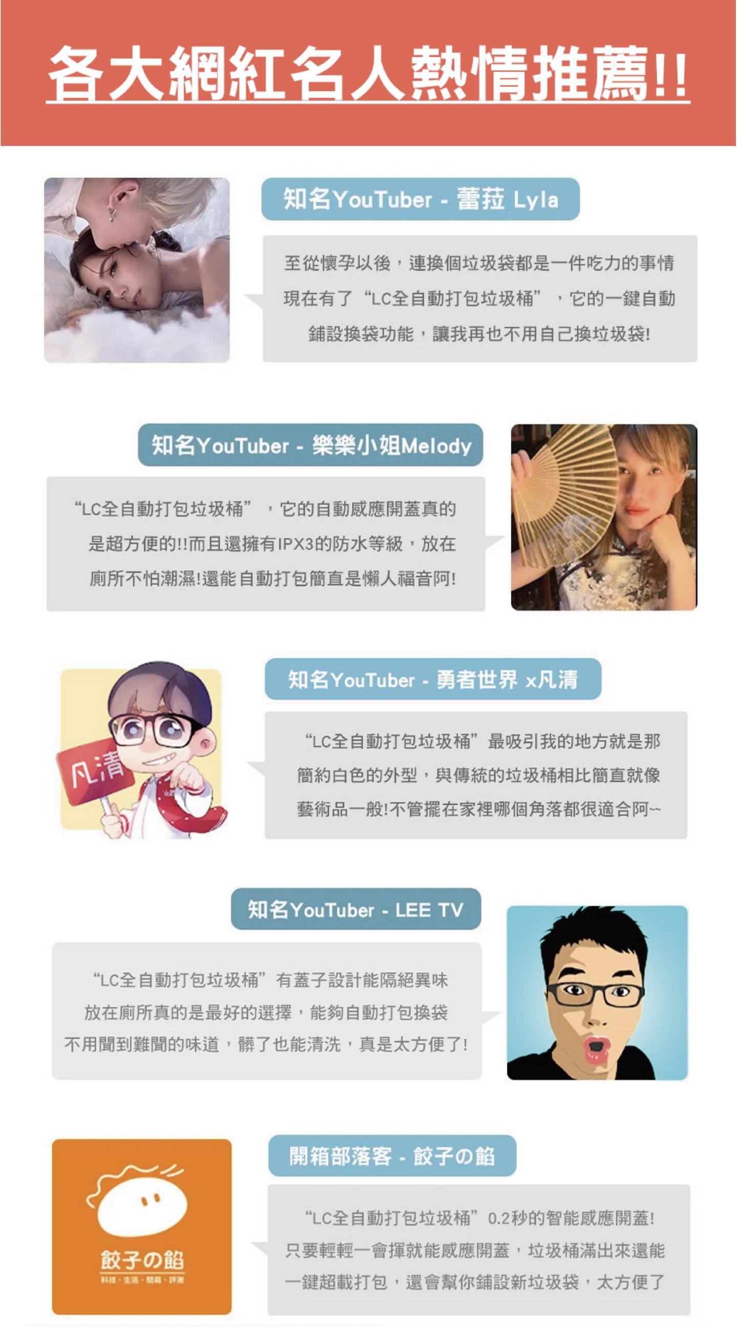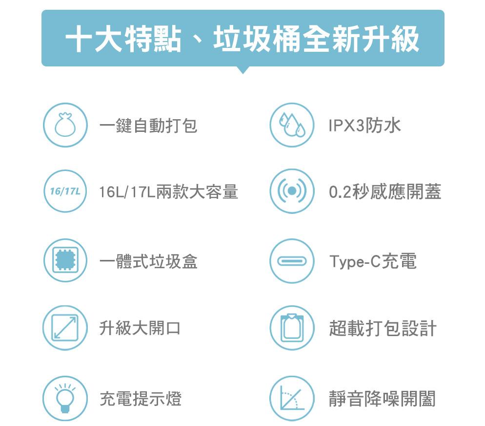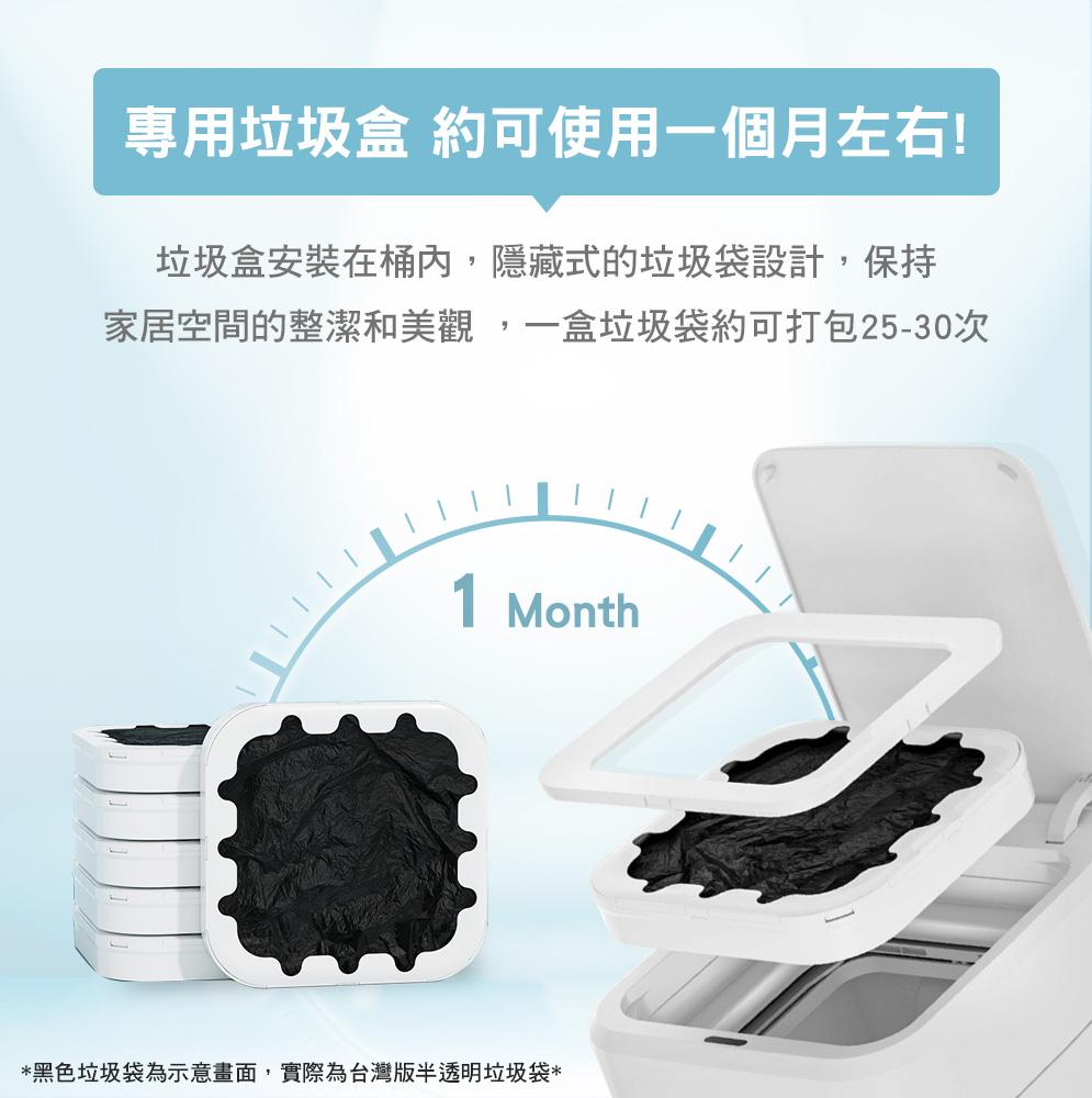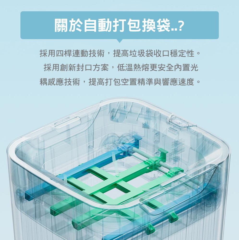 LC 全自動打包垃圾桶,讓您重新定義垃圾桶,30cm 長距離感應,搭配 0.2 秒快速感應、快速開蓋,獨家自動超載打包、垃圾滿出來不用怕,自動換垃圾袋,一鍵搞定,倒垃圾不髒手!