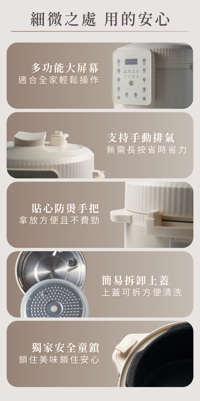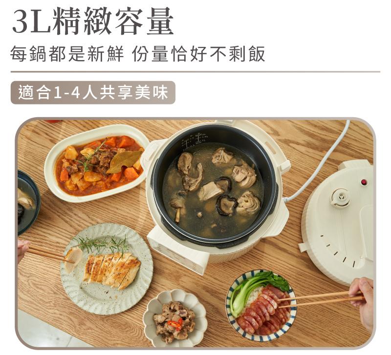 擁有米飯、燉煮、煎炒、舒肥、優格等 12 種料理模式,智能高壓控溫快煮,縮短料理時間,有效保留食材營養!智能24 小時,貼心提前預約功能,3L 剛剛好容量,滿足家庭日常烹煮需求。