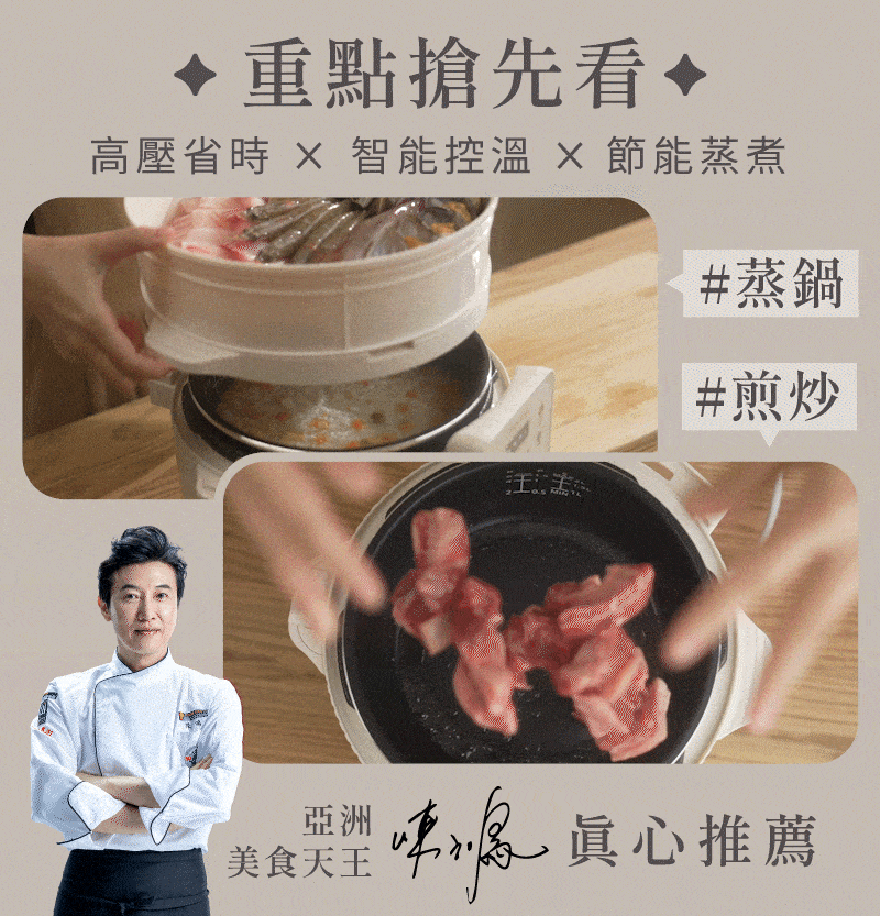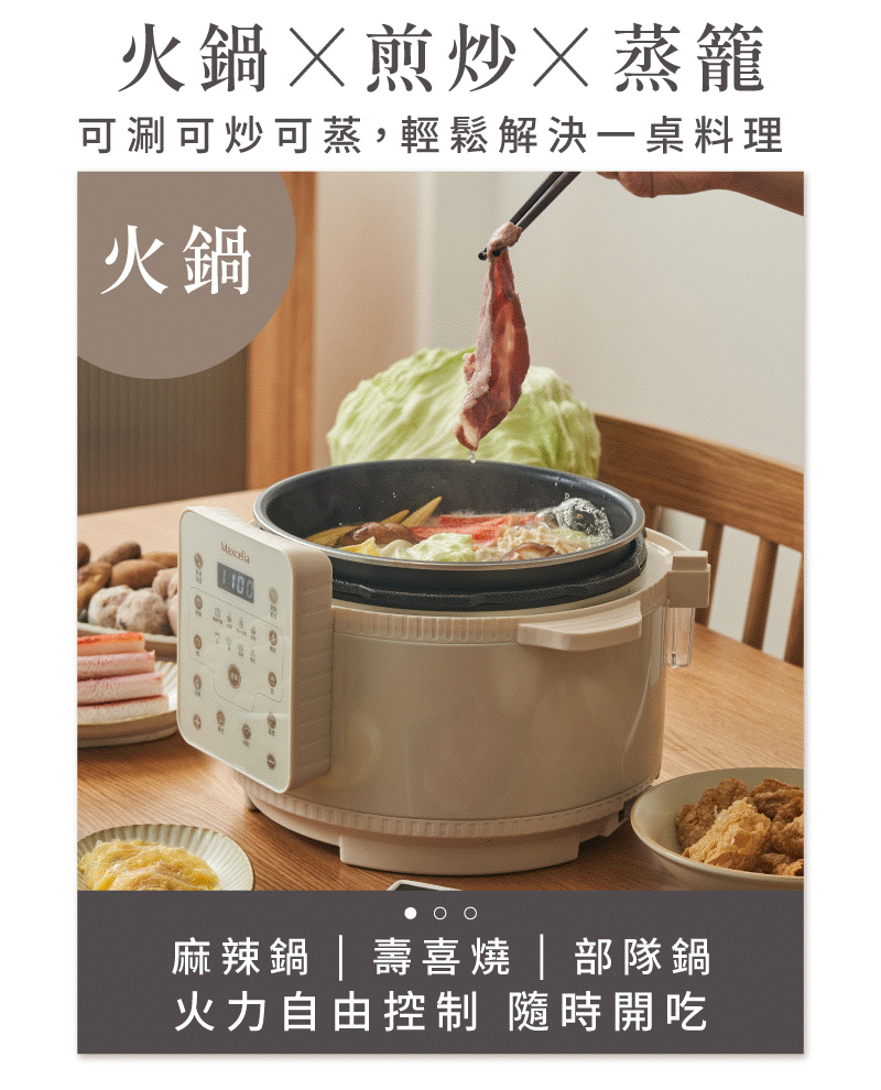 - 可火鍋.煎炒.蒸籠,上蒸下煮一鍋搞定