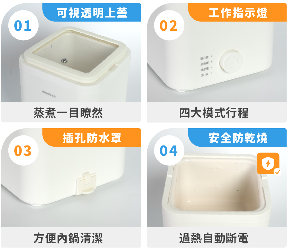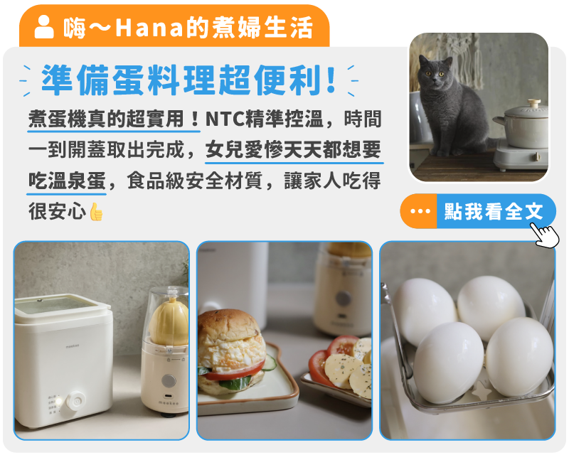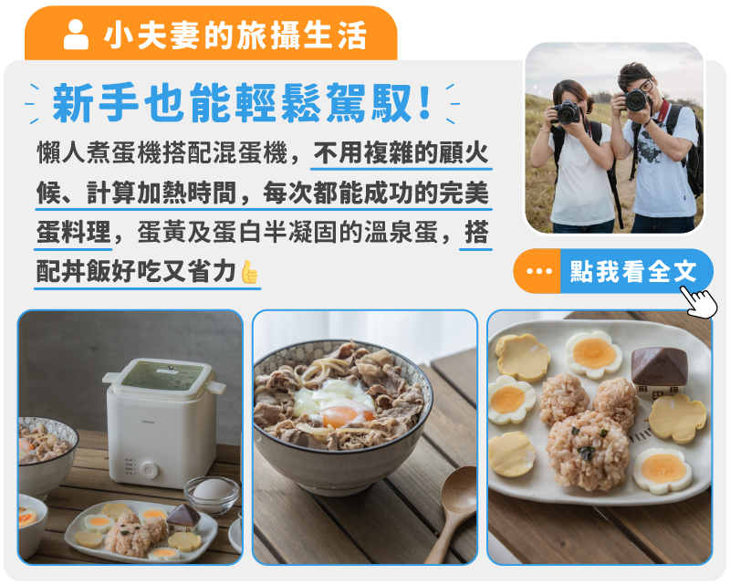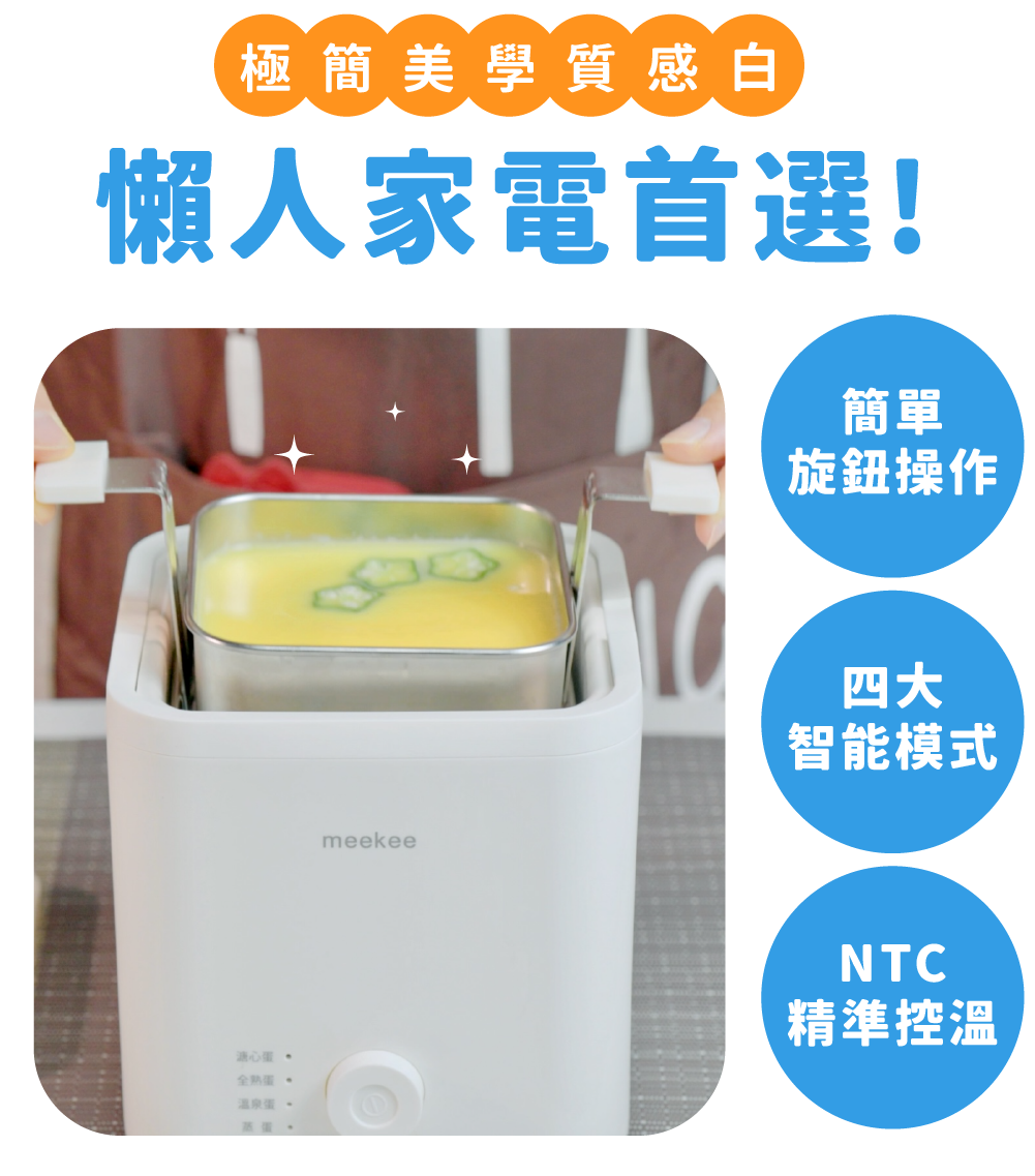 最適合懶人的美型煮蛋機,一機擁有全熟蛋、溫泉蛋、溏心蛋、蒸蛋四大料理行程,多樣化料理輕鬆做。