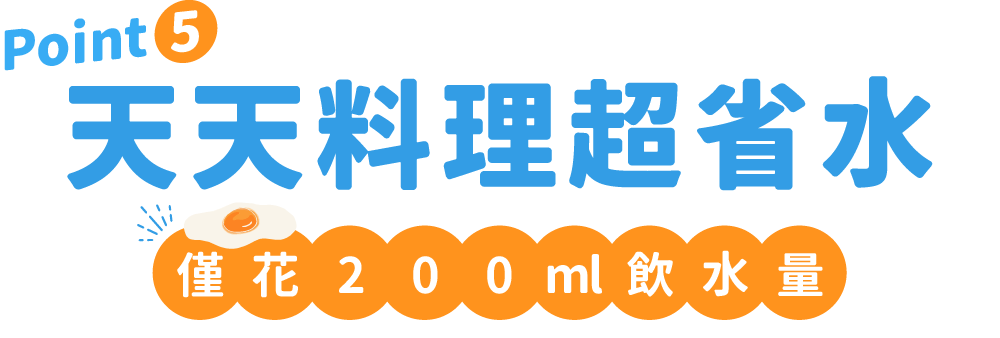 貼心省水設計,比起一般鍋具可減少七倍用水量,僅需要 200ml 水量,即可完成烹煮。