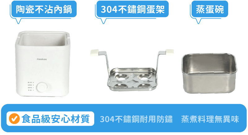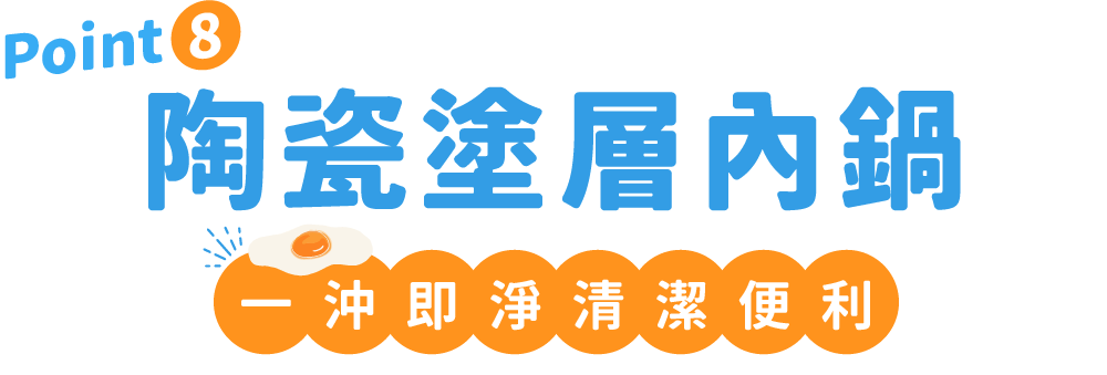 一機擁有全熟蛋、溫泉蛋、溏心蛋、蒸蛋四大料理行程,一次烹煮四顆水煮蛋,省時又便利,陶瓷塗層內鍋,搭配分離式電源線,使用後清潔更便利。